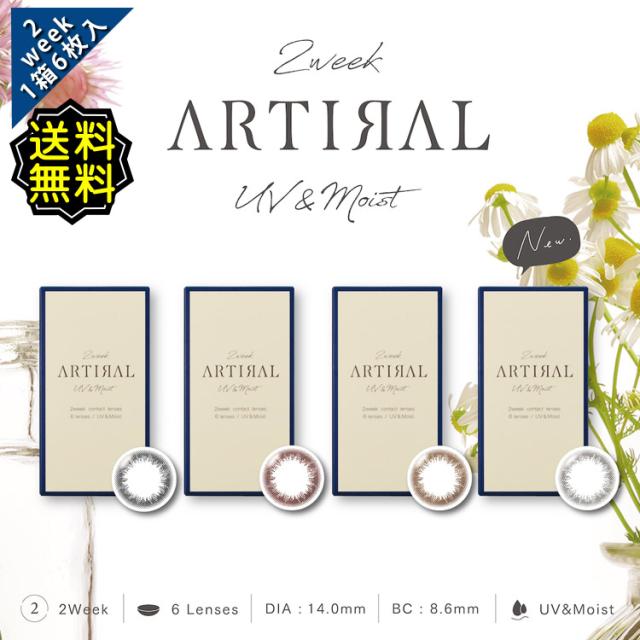 カラコン 2week 度あり アーティラル2ウィークUVM 1箱6枚入 直径14.0mm BC8.6 UVカット ブラック オークル ブラウン【送料無料】