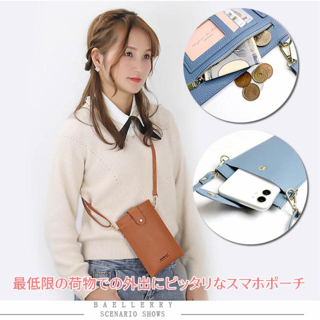 Baellerry スマホショルダー スマホポーチ スマホケース 財布 縦 肩掛けバック レディース ポーチ ポシェット 斜め掛け おしゃれ 薄い 軽量 携帯 カード入れ ミニバッグ プレゼント 送料無料