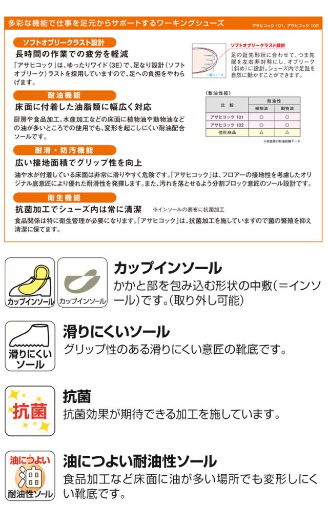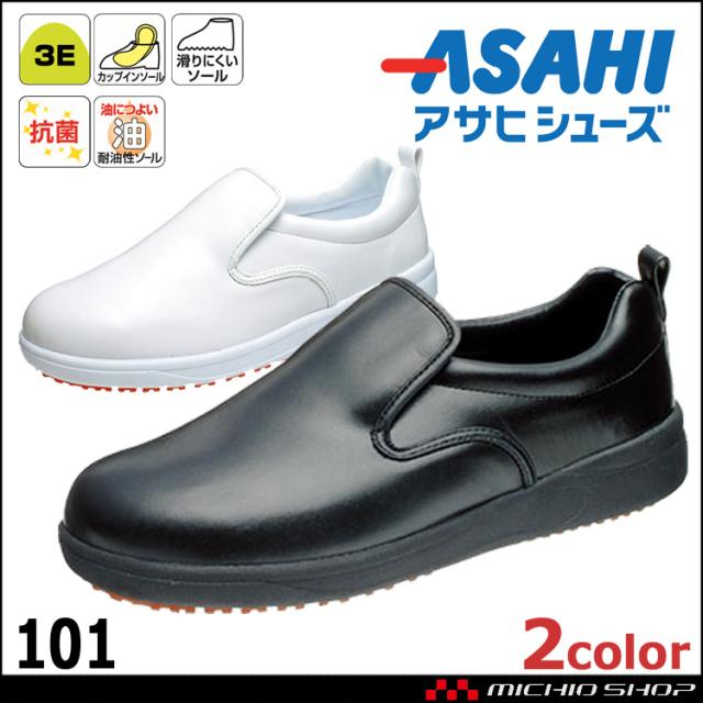 ASAHI アサヒシューズ 101 アサヒコック コックシューズ スリッポン 抗菌 耐油 軽量 食品加工 厨房 飲食店 かかと付き レディース メンズ