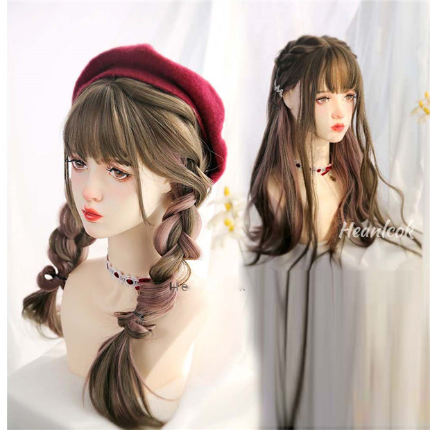 ロングウィッグ レディース ウィッグ ロング フルウィッグ ハイライト 薄紫 (高熱糸) かつら wig 自然 原宿 耐熱 前髪 巻き髪 小顔効果 dp293c0