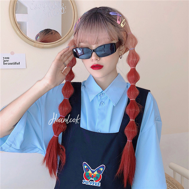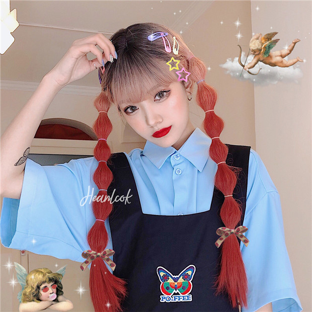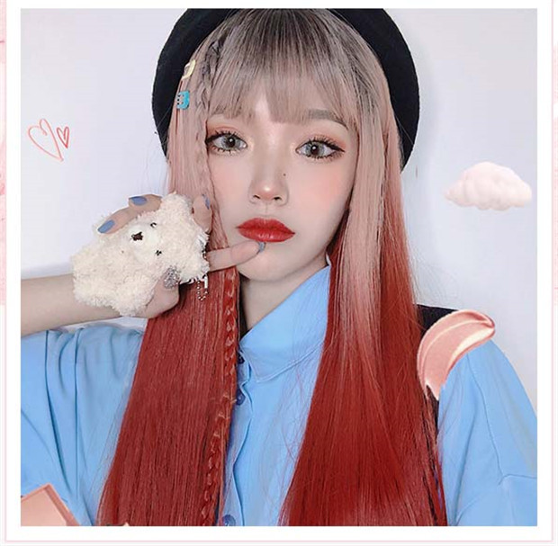 グラデーション ロングウィッグ レディース つけ毛 フルウィッグ (高熱糸) スイカレッド ギャルかつら 小顔効果 ピチピチ弾ける魅力を持った dp296c0
