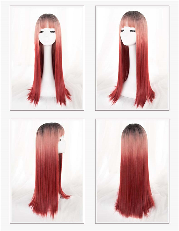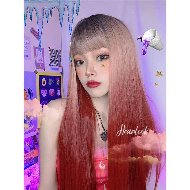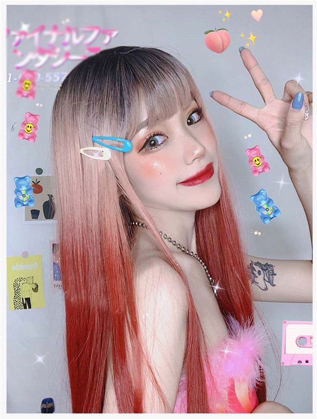 【レビュー投稿で+5%還元】グラデーション ロングウィッグ レディース つけ毛 フルウィッグ (高熱糸) スイカレッド ギャルかつら 小顔効果 ピチピチ弾ける魅力を持った dp296c0