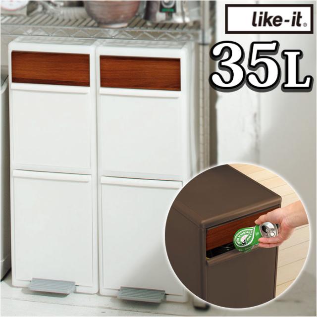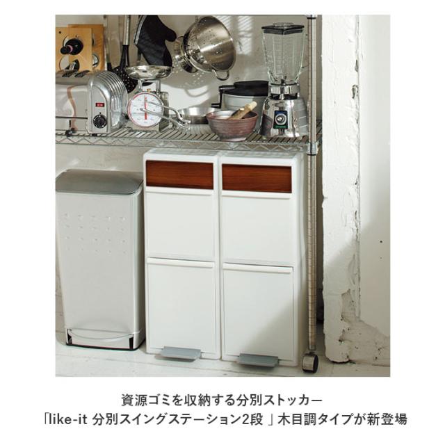like-it ライクイット ゴミ箱 2段 通販 ごみ箱 木目調 ダストボックス 分別 ゴミ 縦型 ペダル付き ペダル ワイド 大型 分別スイングステーション キッチン 収納 掃除 高さ72cm おしゃれ