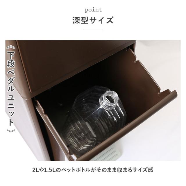 | 商品説明 | ・資源ゴミを収納する分別ストッカー「like-it 分別スイングステーション2段 」木目調タイプが新登場。 【お部屋に馴染みやすい♪】 ・シンプルでスタイリッシュなデザイン。 【目安分別容量は35L】 ・上段20L(耐荷重約5kg)、下段15L(耐荷重約1.5kg)のスリムなタテ型設計。 【お手入れラクチン】 ・汚れが気になったらサッと拭き取り!上段・下段ともに取り外し可能。 【ゴミの分別に!】 ・おしゃれな区分シールが付属。さらに細かく分類できるチェックボックス付き。 ・《上段スイングユニット》 【インテリア性アップ】 ・ナチュラルな木目調のスイングパネルを装備。片手で廃棄物を押し込んで投入。 【多分別OKな引き出し】 ・引き出し内の切り込みに袋を引っ掛けるだけ。1段で数種類の分別ができちゃう! ・《下段ペダルユニット》 【フットペダル開閉式】 ・かがむことなくゴミ捨てラクラク! 【深型サイズ】 ・2Lや1.5Lのペットボトルがそのまま収まるサイズ感。 |