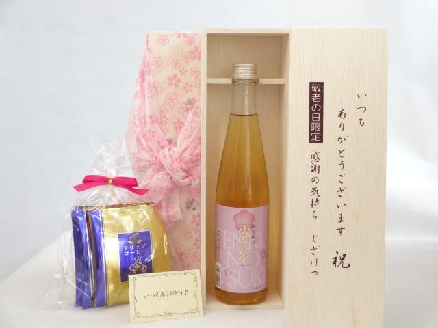 じいじの敬老の日 ギフトセット 梅酒セット いつもありがとうございます感謝の気持ち木箱セット 挽き立て珈琲(ドリップパック5パック)( 老松酒造 天空の月 樽熟梅酒 500ml (大分県) ) メッセージカード付