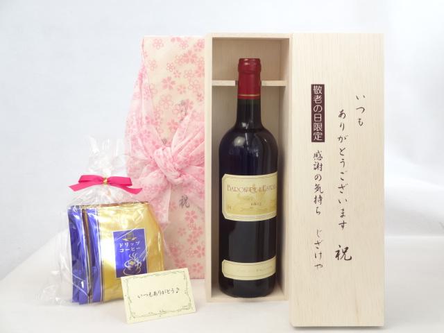 じいじの敬老の日 セット ワインセット いつもありがとうございます感謝の気持ち木箱セット 挽き立て珈琲(ドリップパック5パック