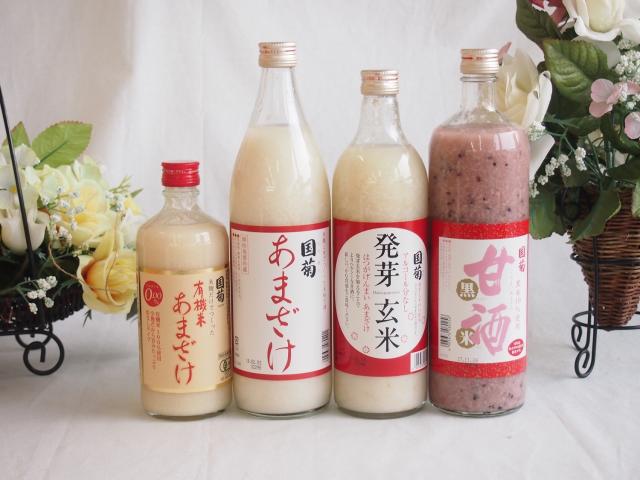 甘酒 話題の国菊ノンアルコール豪華4本セット(あまざけ900ml黒米甘酒900ml発芽玄米985g有機米あまざけ500ml(福岡県))