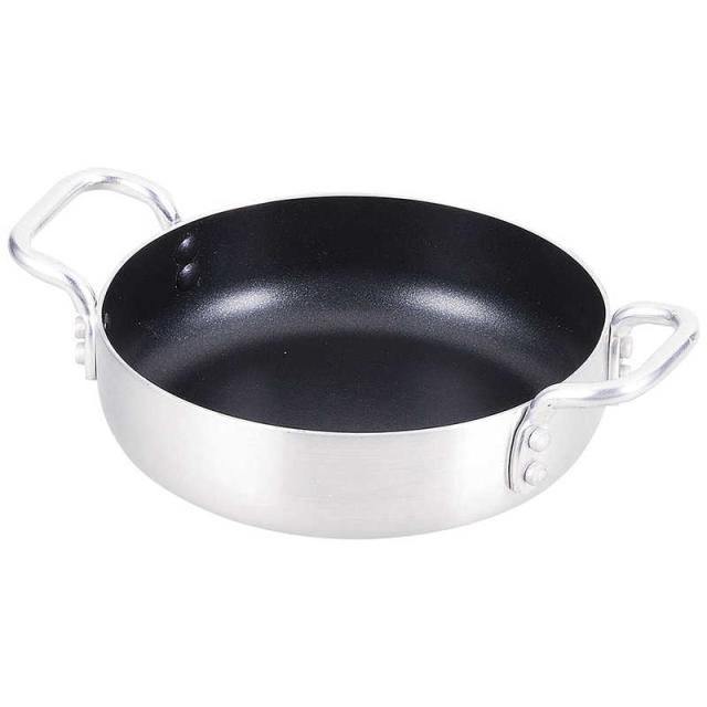 ●材質: 表面加工=内面=ふっ素樹脂塗膜加工 材料の種類=本体=アルミニウム合金 はり底=ステンレス鋼(クロム16%)