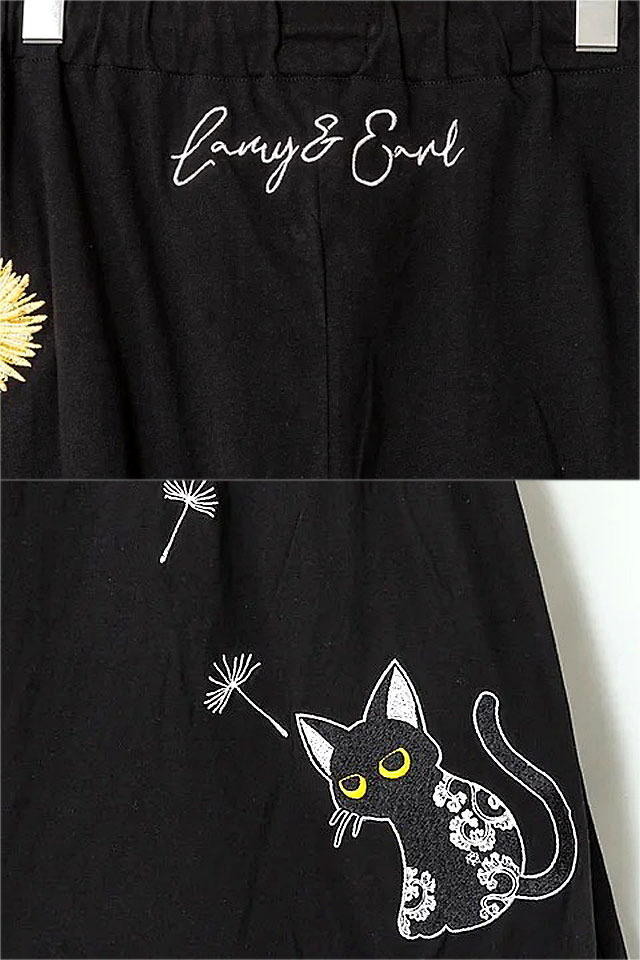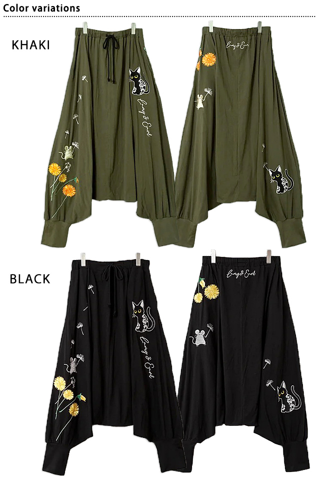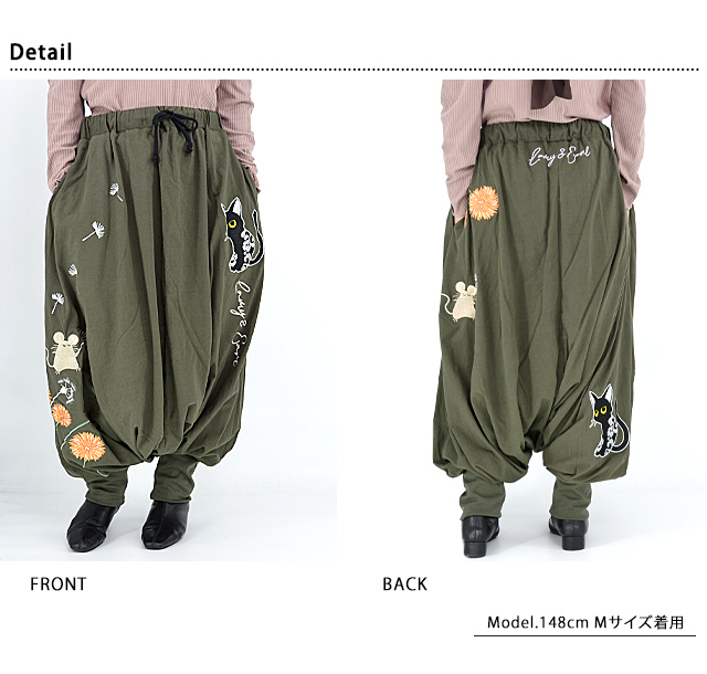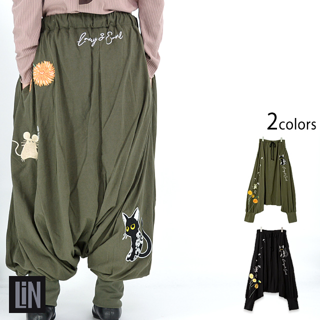 ラミ&アール タンポポサルエルパンツ LIN レディース AL-75706 猫 ネコ 鼠 ネズミ 和柄 刺繍