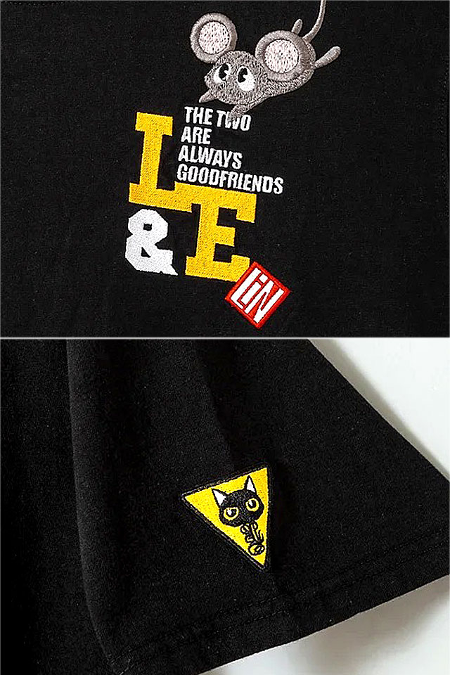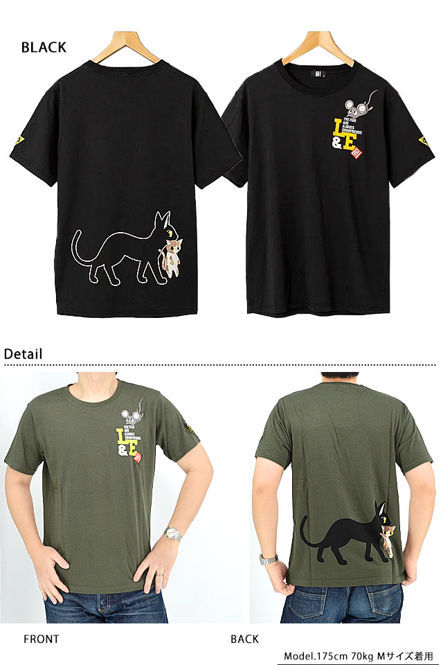 面倒見がいいラミ綿レーヨン半袖Tシャツ LIN AL-75067 猫 ネコ 鼠 ネズミ 男女兼用