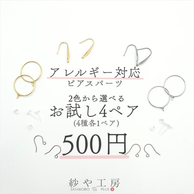 ピアスパーツ アレルギー対応素材 お試し セット 4種 各1ペア 計4ペア ゴールド シルバー ニッケルフリー チタン 樹脂 316Lステンレス 金属アレルギー対応 アクセサリー パーツ 問屋 卸 おすすめ 材料 ハンドメイド ハンドメイドパーツ さや工房 手作り