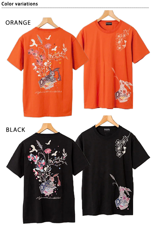 黒菟華 不思議の本半袖Tシャツ LIN AL-759033 兎 ウサギ 和柄 和風 男女兼用 ユニセックス