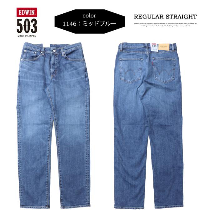 大きいサイズ EDWIN エドウィン 503 レギュラーストレート デニム ジーンズ 日本製 ストレッチ パンツ メンズ 送料無料 E50313