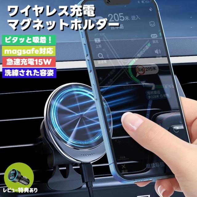 ワイヤレス 充電器 マグネットホルダー M1 車載 magsafe Qi対応 エアコン吹出口 レビュー投稿特典あり 【スマホ アクセサリー 車載ホルダー 強力マグネット シガーソケット カーチャージャー メタルプレート 強い磁石 マグセーフ アクリル ホルダー 高温対策 】