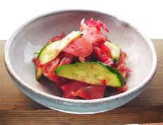 女性に大人気の「梅ザーサイ」です。 歯ざわりの良いザーサイとほどよく甘酸っぱいかつお梅をからませたという、絶妙な味わいの逸品です。