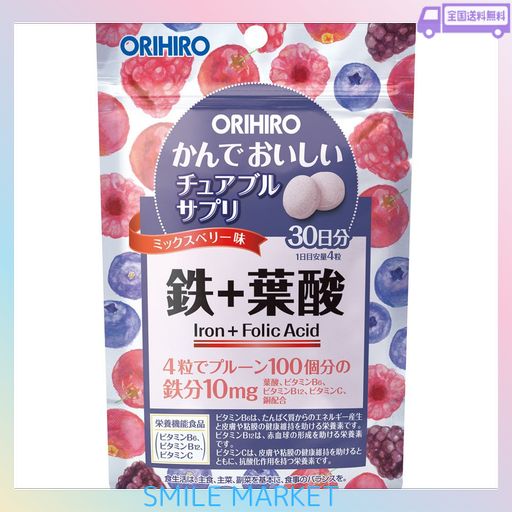 オリヒロ かんでおいしいチュアブルサプリ 鉄+葉酸 120粒