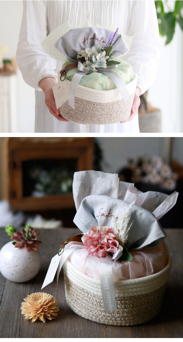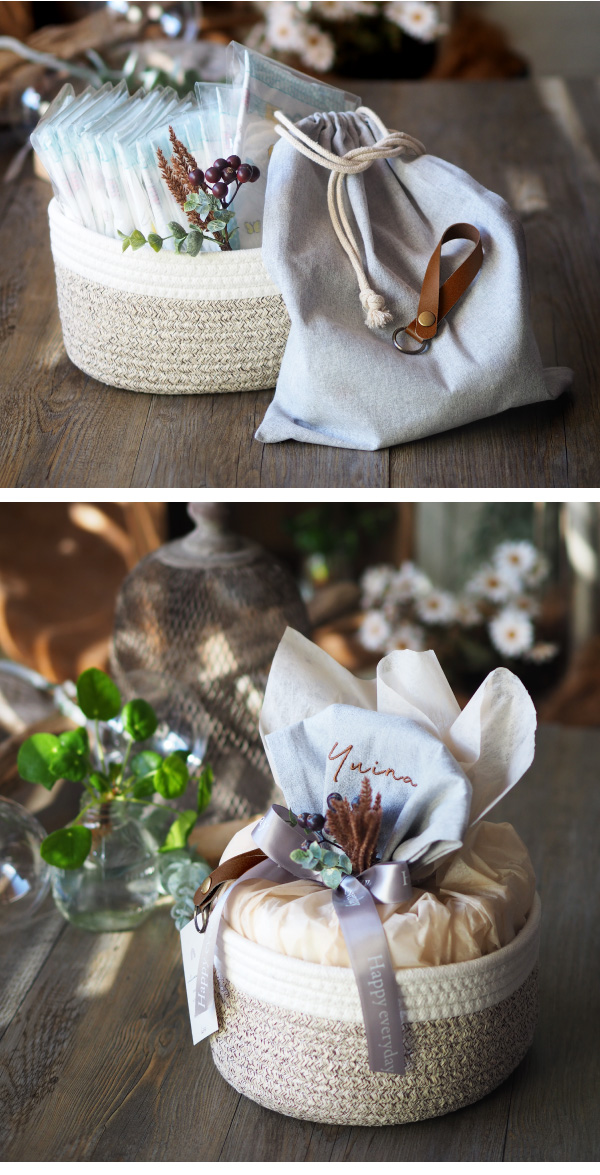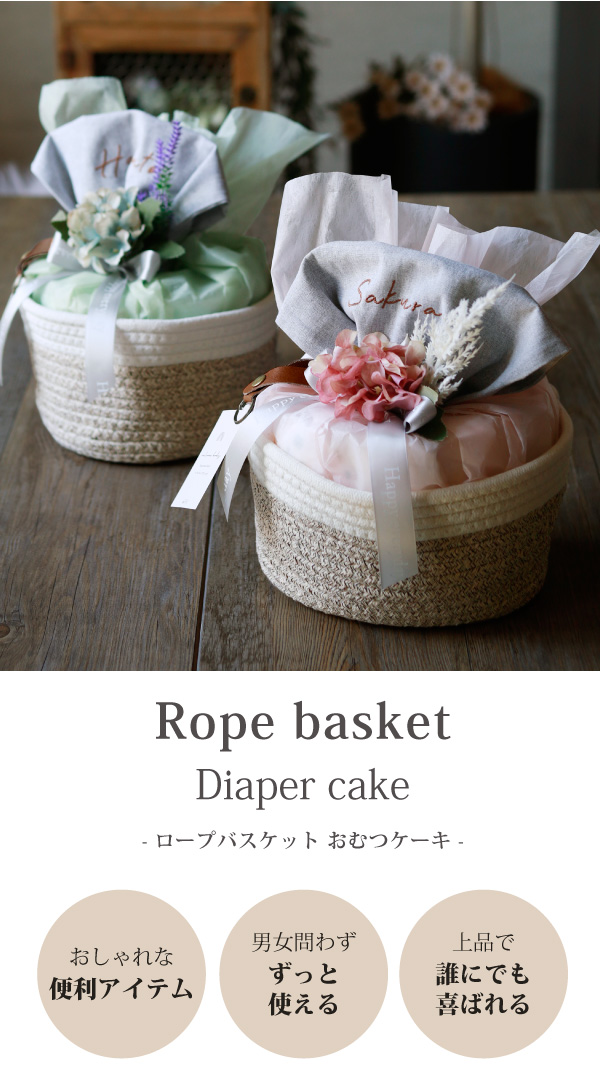 | セット内容 | ・おむつ ・ロープバスケット ・キーホルダー ・巾着 ・アーティフィシャルフラワー |
