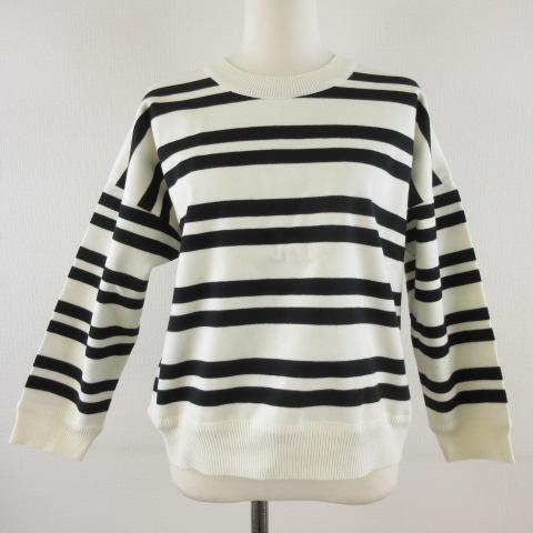 【中古】ゼルダ ZELDA カットソー ニット 長袖 ボーダー オフホワイト 白 黒 38 *E350 レディース