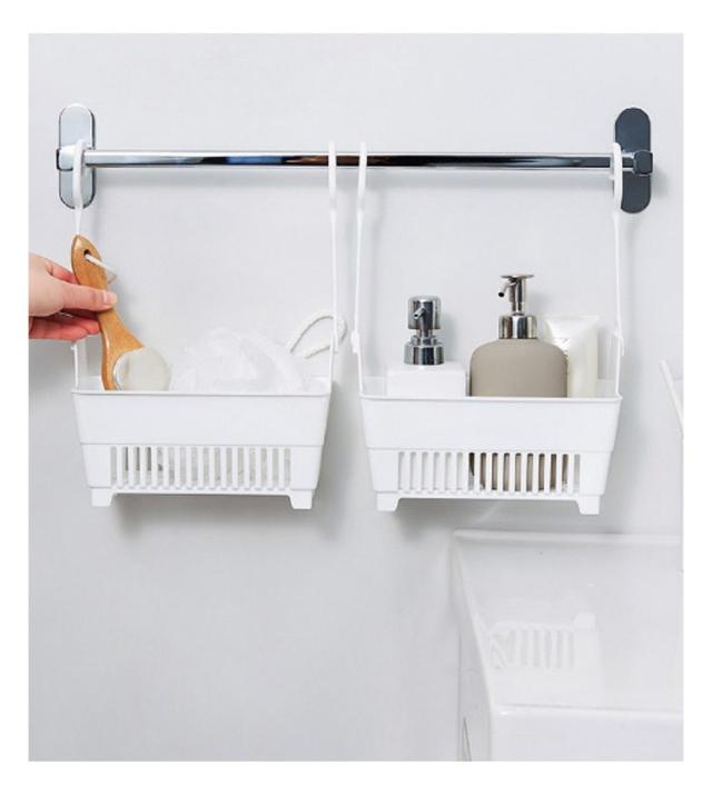 お風呂用 ハンギングバスケット おもちゃバスケット 2個セット シャワーラック 収納 バーに吊るせる ボトル ラック 引っかけ 連結 バスルーム タオルバー 引っ掛け フックが長い