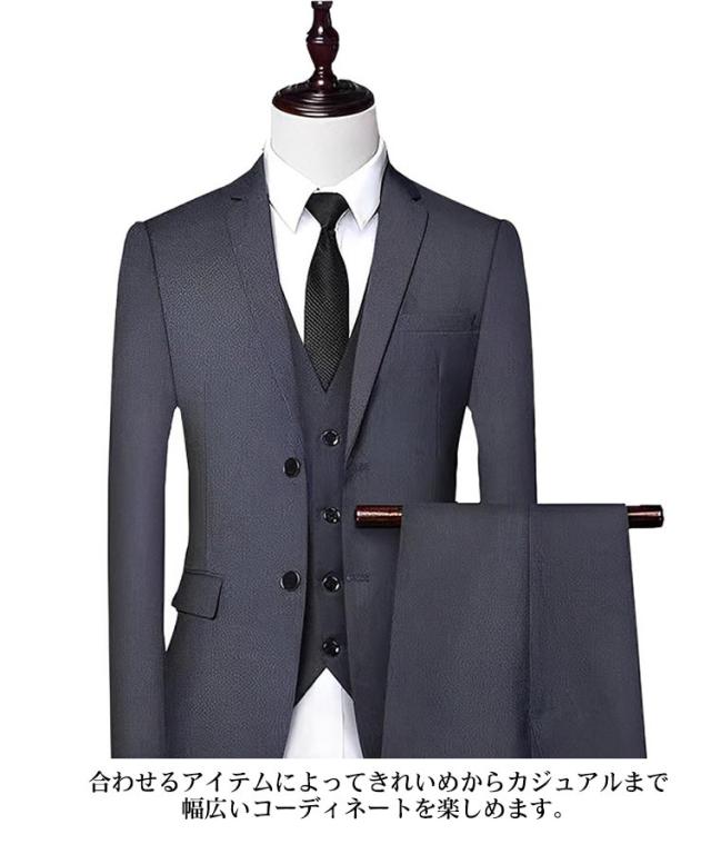 | セット内容:ジャケット+ベスト+スラックス さりげない絶妙シルエット、洗練された大人のビジネススーツセットです。 ポリエステルとビスコース繊維の混紡生地で、スーツセットはドレープ感があり、着用で不収縮です。 このメンズスーツ上下セットは通年物、一着で様々なシーンに応じけます。 結婚式スーツ、パーティースーツ、二次会スーツなどとして使えます。 ちょうどいい厚さで、これからの季節にピッタリなスーツ、スッキリとしたスタイルに魅せてくれる計算しつくされた絶妙なシルエットが魅力的。 合わせるアイテムによってきれいめからカジュアルまで幅広いコーディネートを楽しめます。 | |