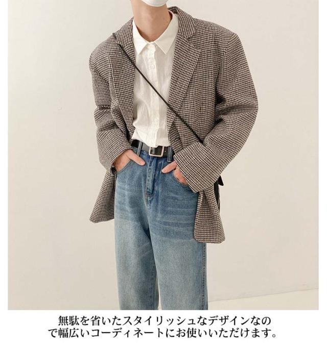 ジャケット メンズ テーラードジャケット アウター チェック柄 千鳥格子 ブレザー 大きいサイズ カジュアル コート 2つボタン おしゃれ 春 秋 冬 韓国系 メンズファッション 普段着 送料無料