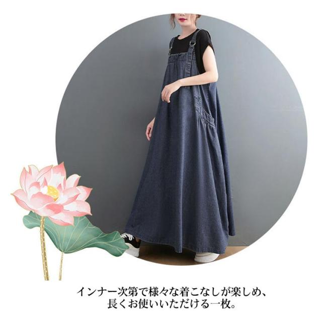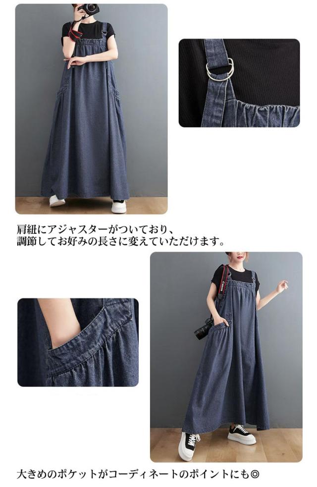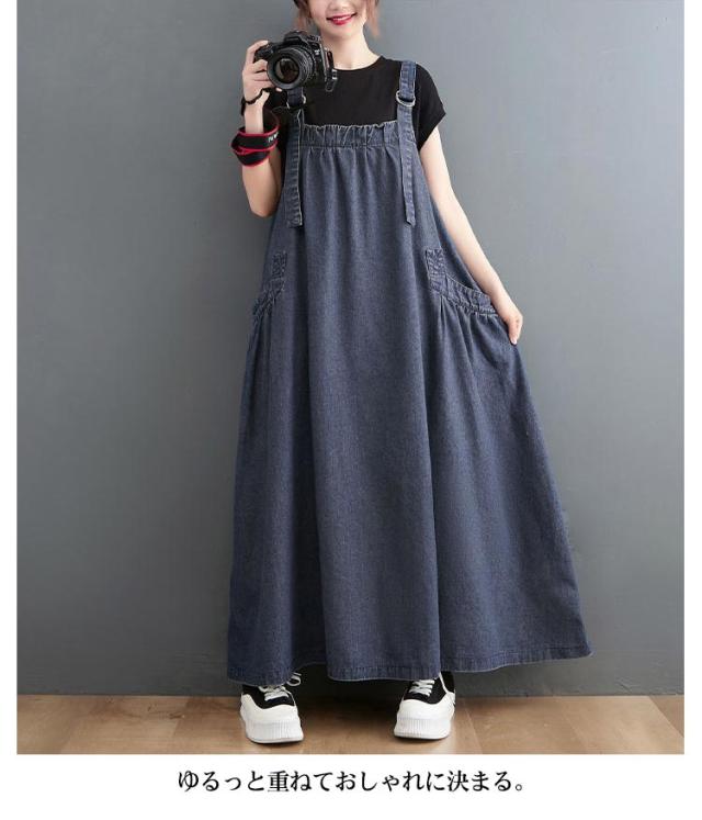 マキシワンピース オーバーサイズ 送料無料 サロペットワンピース レディース サロペット ロングワンピース オールインワン スカート デニムワンピース ロング ジャンパースカート デニム 無地 大きいサイズ ゆったり 体型カバー マキシ丈 ポケット