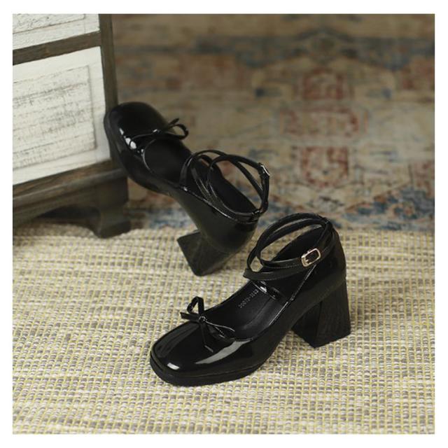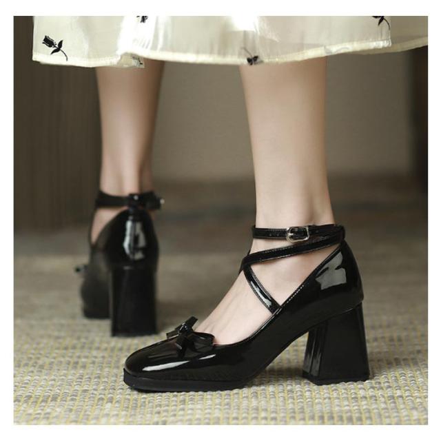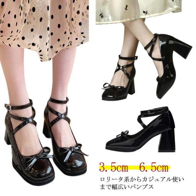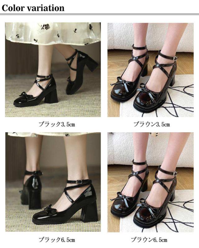 パンプス ロリータ 痛くない ぺたんこ 送料無料 ブラック 黒 ブラウン ヒール 太ヒール アンクルストラップ リボン おしゃれ かわいい 歩きやすい サイズ調整 ストラップ チャンキーヒール 疲れない リボン ブラウン ゴスロリ 靴