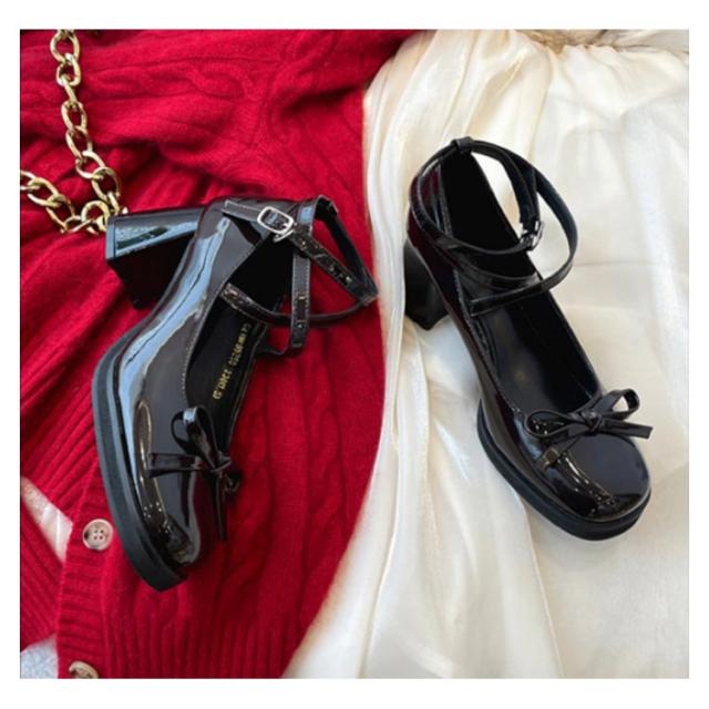| ロリータ系からカジュアル使いまで幅広いパンプス フロントのリボン付きがさりげないポイント。 サイズはやや小さめの設計となっていますので、普段のサイズの一つ大き目をおすすめします。 ゴスロリ、甘ロリファッションにぴったり。 | |