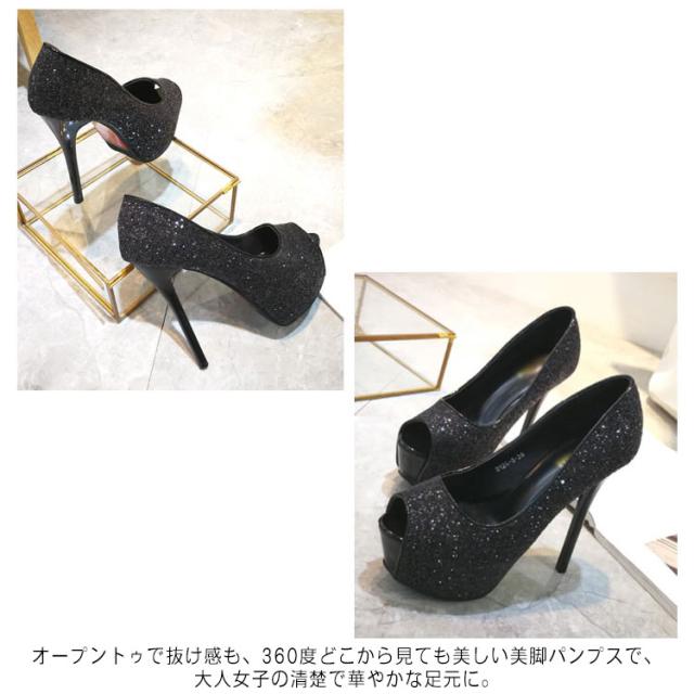 パンプス レティース 靴 ハイヒール ピンヒール キラキラ オープントゥ シューズ 結婚式 前厚 キャバパンプス パーティーパンプス 痛くない ストーム厚底 美脚 ブライダルシューズ キャバ嬢 発表会 演奏会 歩きやすい 通勤 パーティー シューズ サンダル おしゃれ