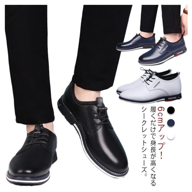 シークレットシューズ 6cmアップ スニーカー メンズ ビジネス シューズ 紳士靴 結婚式 革靴 カジュアルシューズ 柔らか インヒール 快適 背が高くなる 靴 カジュアル 入学式 卒業式 仕事用 歩きやすい 通気性 23.5-26.5cm