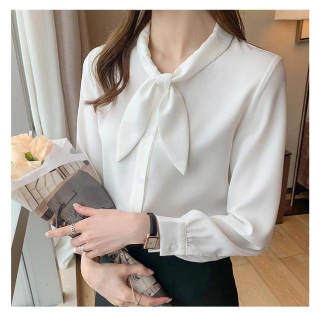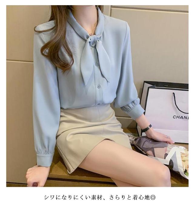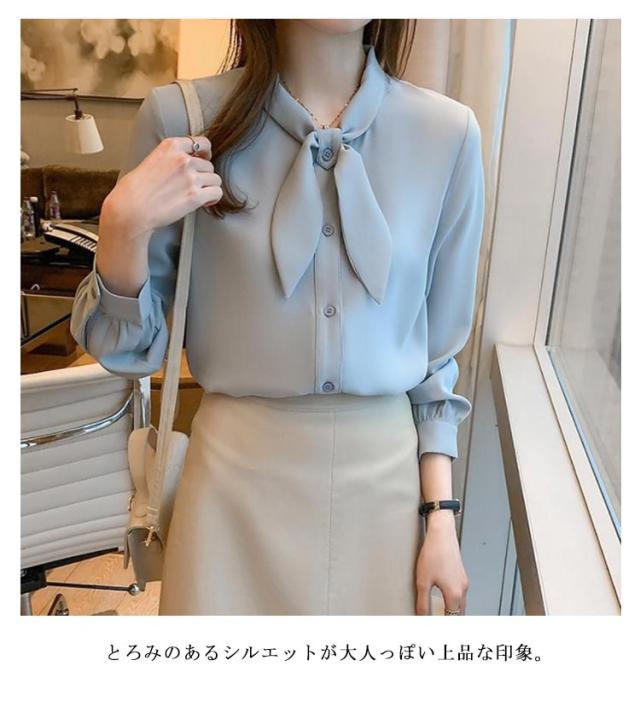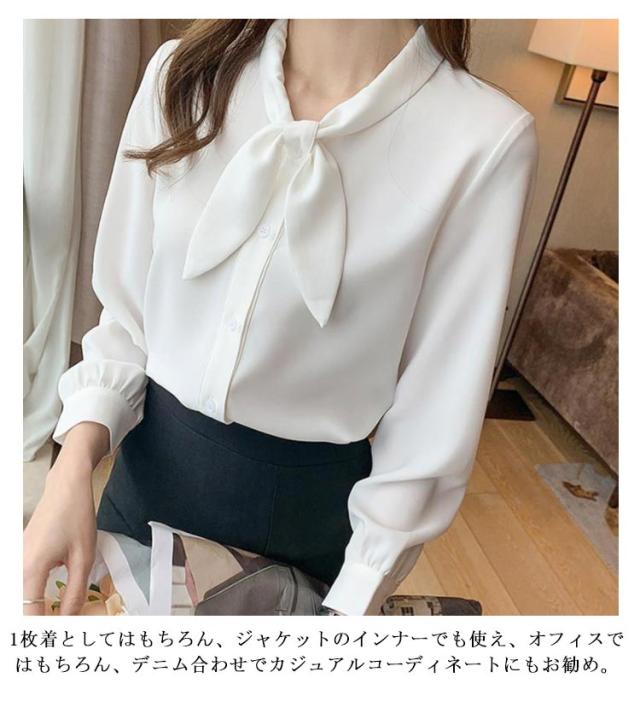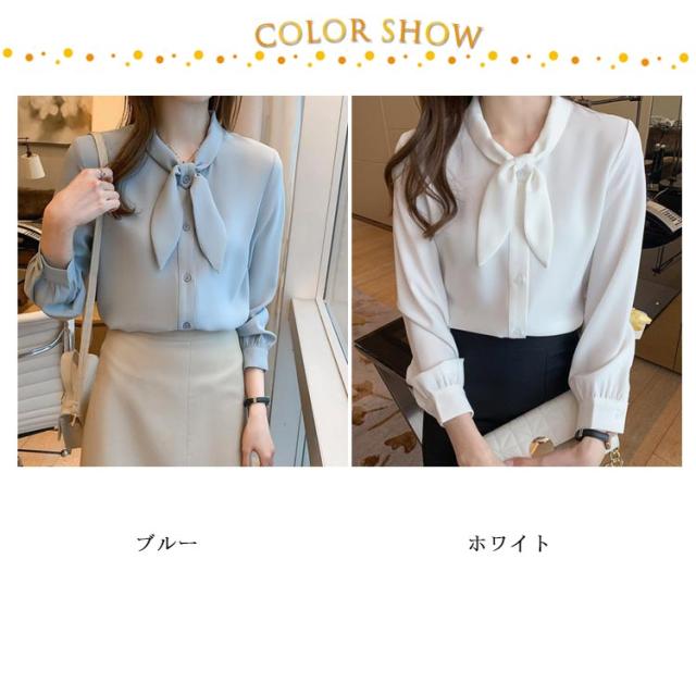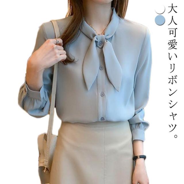 シフォンブラウス 長袖 ブラウス リボンシャツ ワイシャツ レディース フォーマル オフィス きれいめ OL 送料無料 とろみシャツ 通勤 上品 無地 ビジネス 通学 デート お出かけ 女子会 二次会 ボウタイシャツ