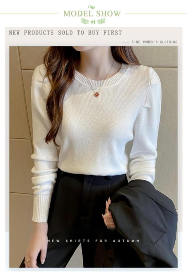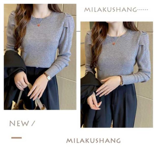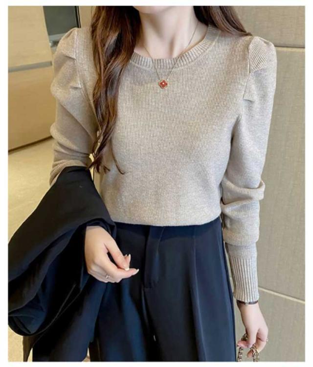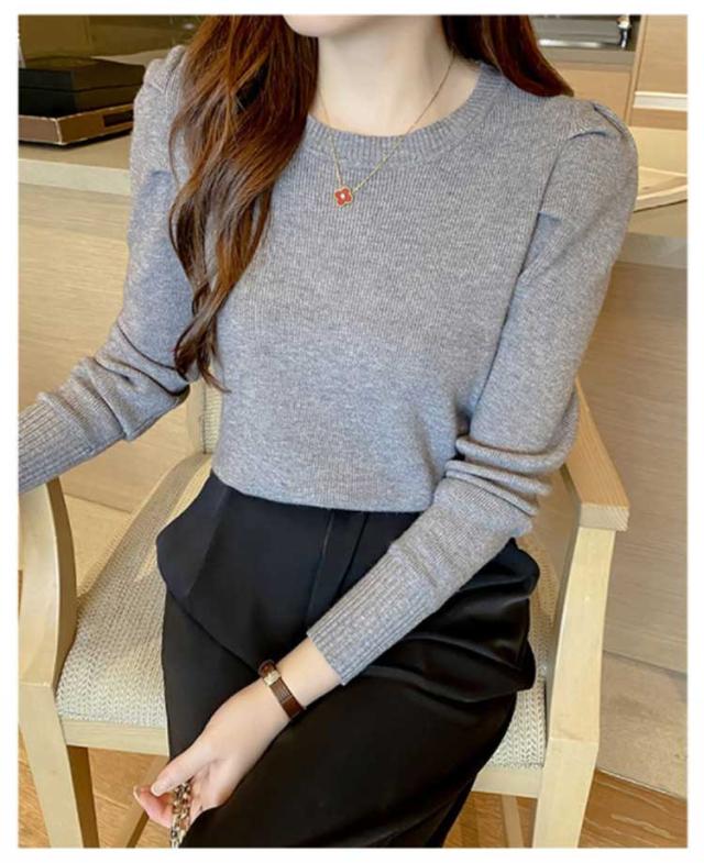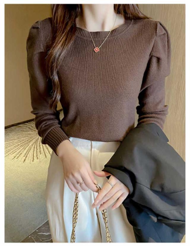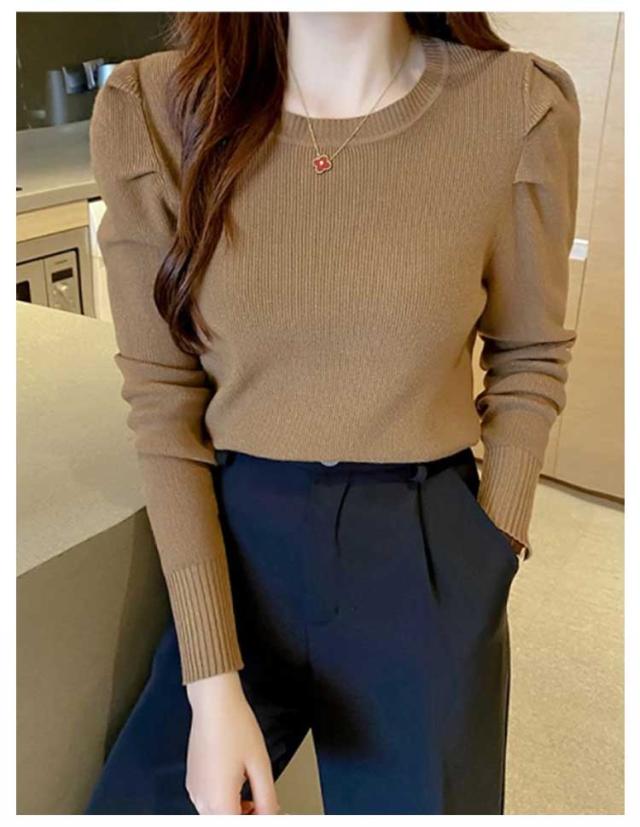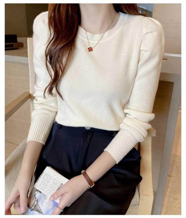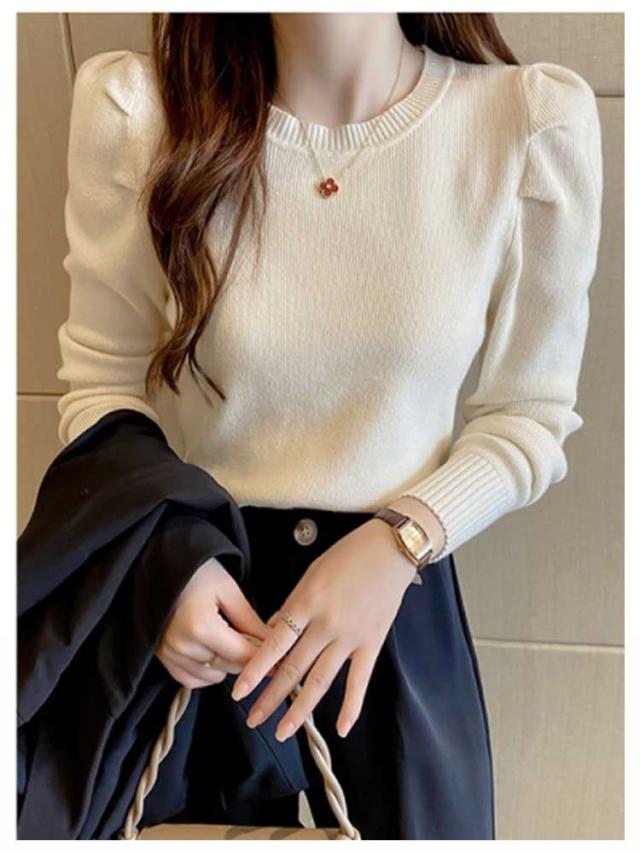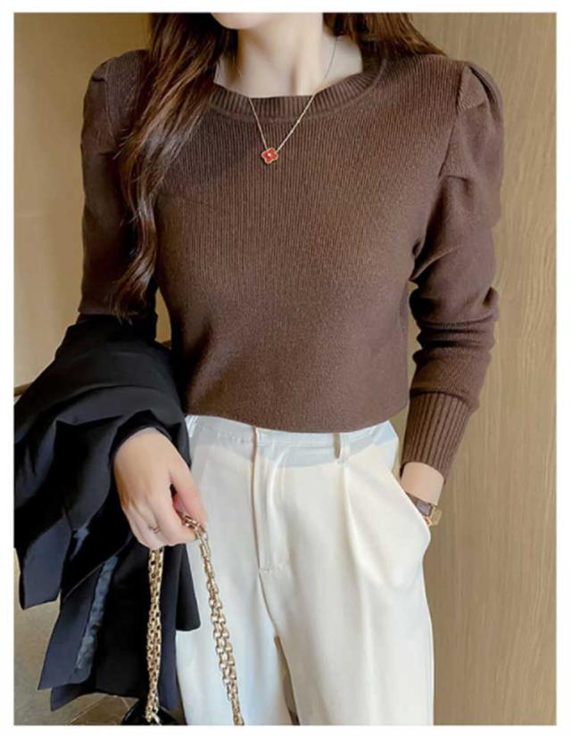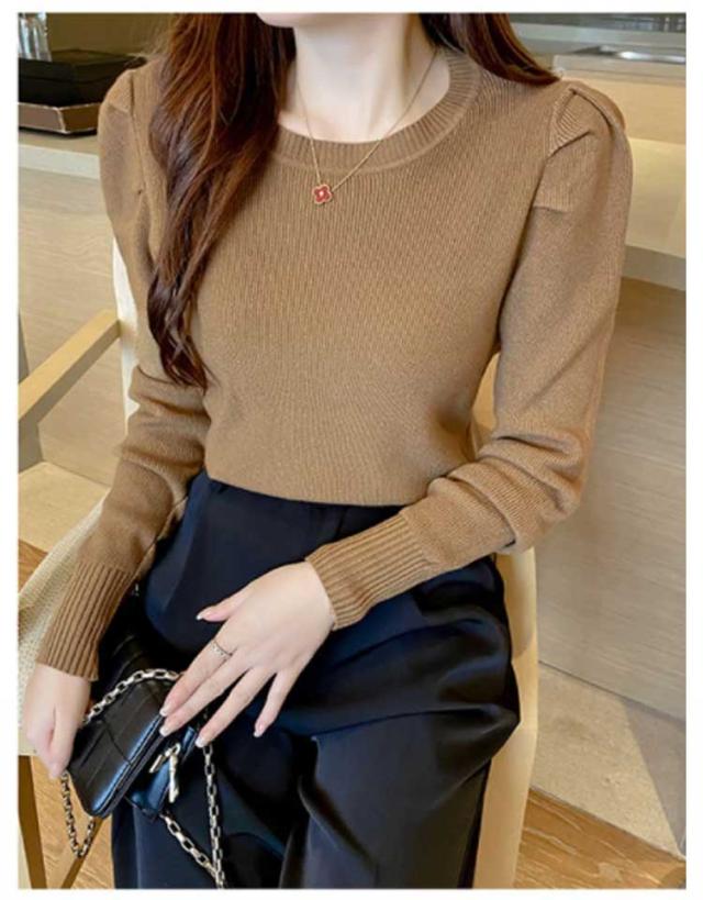 送料無料 ニット パワショル セーター パワショルニット トップス レディース パワーショルダー 長袖 無地 ラウンドネック ギャザーショルダー ボリューム 長袖 カットソー シンプル おしゃれ きれいめ カジュアル 着回し デイリー