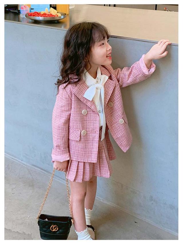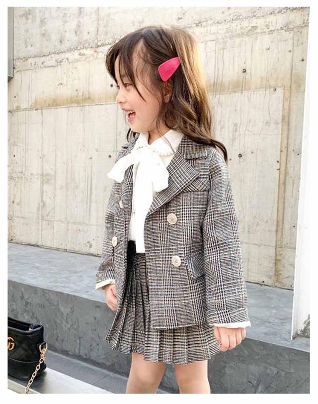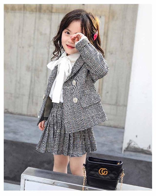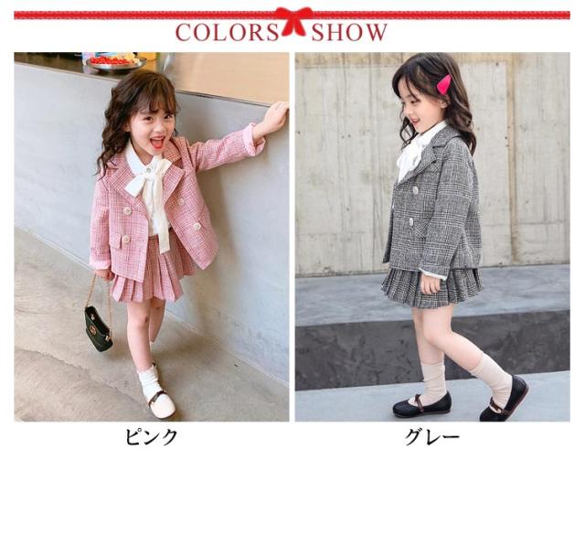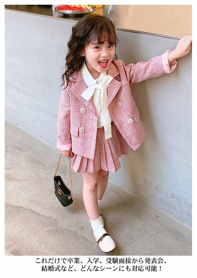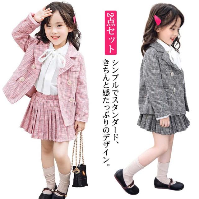 キッズ 入学式 スーツ 女の子 卒園式 小学生 子供服 フォーマル 2点セット 小学校 ジュニアスーツ チェック柄 ジャケット スカート 受験 発表会 結婚式 七五三 キッズスーツ 100 110 140 150 160cm 送料無料