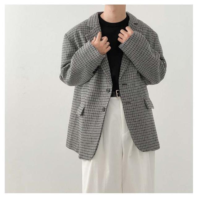 ジャケット メンズ テーラードジャケット アウター チェック柄 千鳥格子 ブレザー 大きいサイズ カジュアル コート 2つボタン おしゃれ 春 秋 冬 韓国系 メンズファッション 普段着 送料無料