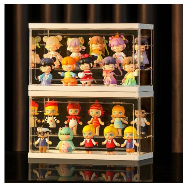 コレクションケース 2個セット フィギュアケース 内部2段式 アクリルボックス 収納ケース 展示ケース 積み重ね可能 扉付き 透明 防塵 アクリルケース 展示用 小型フィギュア 卓上 組立簡単 ディスプレイ