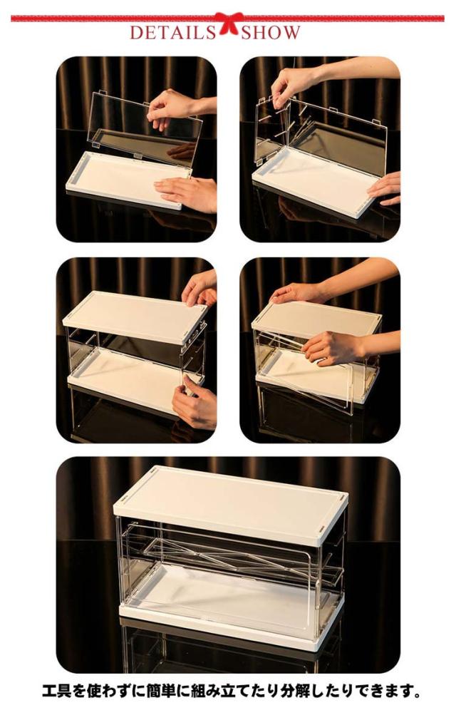 | 数段式の段差で一つ一つがよく見える仕様の、アクリル素材のコレクションケースです。 コレクションボックスや、商品のディスプレイケースにもぴったり! 大事なコレクション達を埃から守ってくれます。 工具を使わずに簡単に組み立てたり分解したりできます。 透明の扉がついて、埃も入らず、出し入れも簡単にできます。 | |