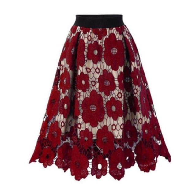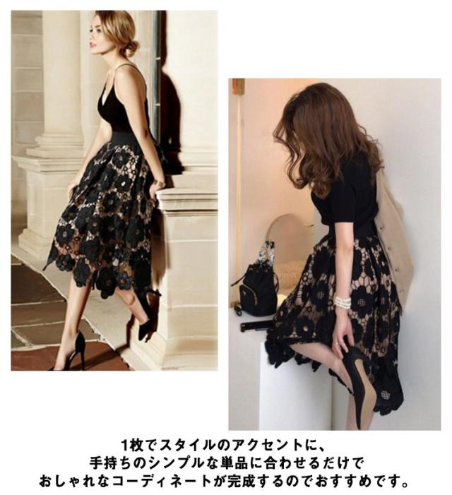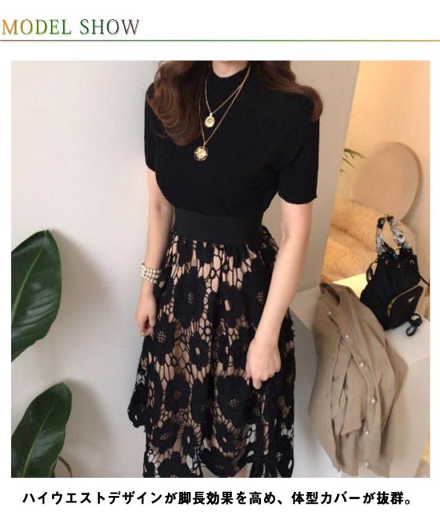 Aライン スカート ロングスカート レーススカート ハイウェストスカート 透かし編み 大人 可愛い お呼ばれ エレガント フェミニン 大きいサイズ 体型カバー S M L XL 2XL 3XL 4XL 5XL