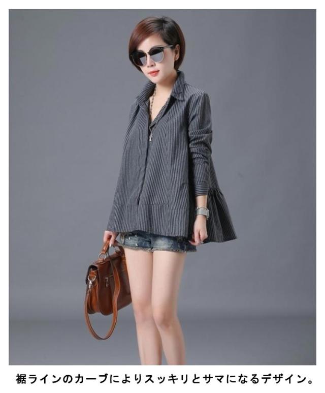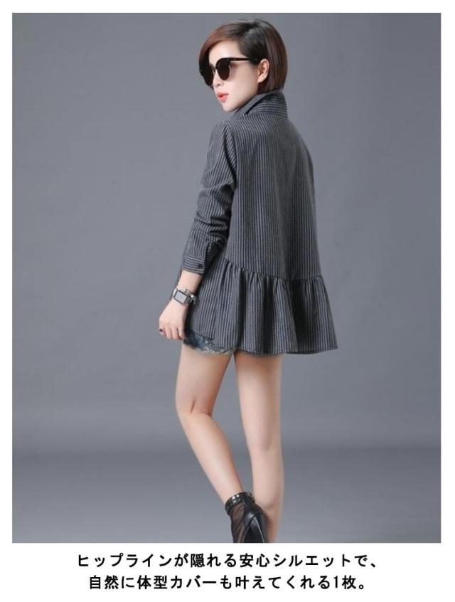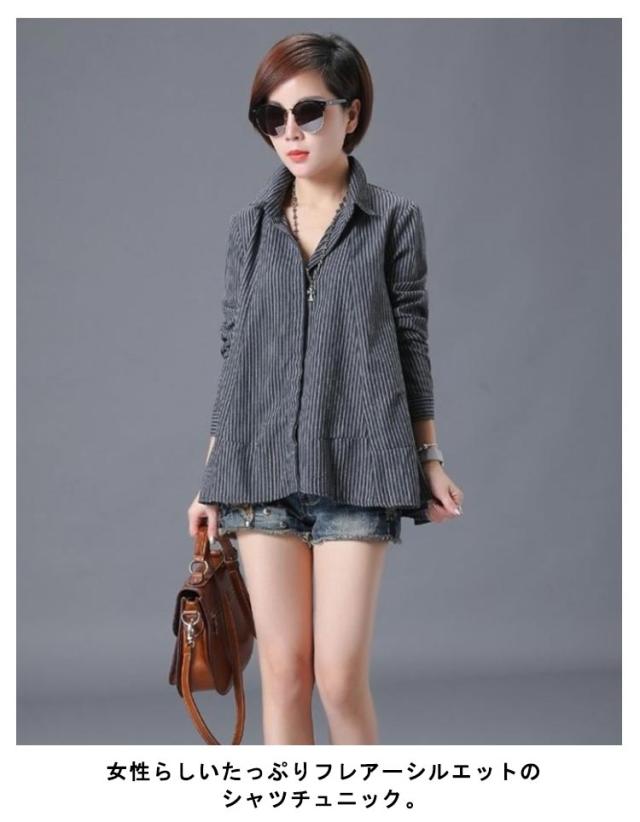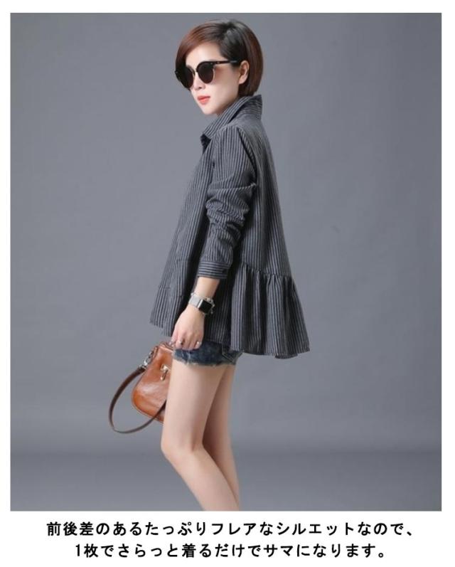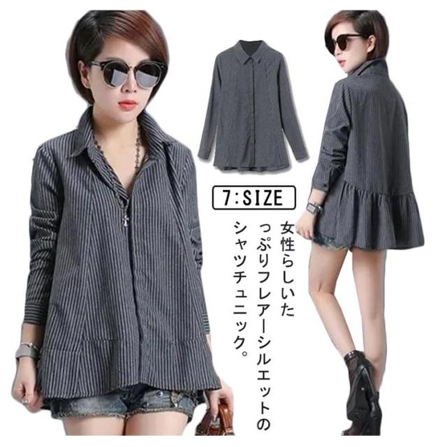 送料無料 フレアーシルエット シャツ チュニック ギャザー フレア ビッグ シャツ ブラウス デザインシャツ ストライプ 長袖 フレア ふんわり フレアブラウス 切り替えブラウス 体型カバー ゆったり きれいめ オフィス 通勤 上品