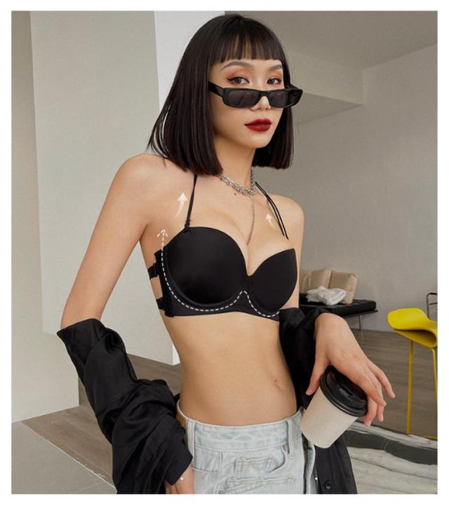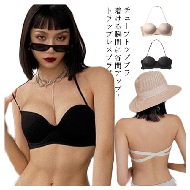 | 着ける瞬間に谷間アップ!トラップレスブラ。 肩や胸元のあいたドレスに絶対おすすめ! ストラップレスなのでサイドホックで美乳をメイク。 ワイヤー入り&立体カップで綺麗なシルエットに。 カップ部分は柔らか素材で通気性があり汗ばむ季節も快適♪ 2重のバックベルトでホールドアップ!シリコンサイドも付いているので、背中開いた服を着る際にぜひおすすめです。 ストラップレスは肩や背中開いた服やドレスの時だけでなく肩紐の食い込みや肩こりのお悩みも解決できる! 首紐もついているので、いろんなシーンにも合わせる! ドレススタイルの他、オフショルや夏のファッションにも大活躍間違いなし! | |