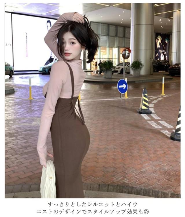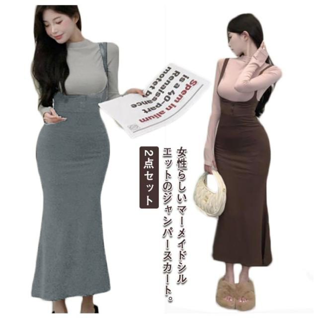 送料無料 セットアップ ロングスカート マーメイドスカート ジャンパースカート スカートスーツ サロペット ジャンスカ キャミワンピース レディース タイトスカート ミモレ丈 お洒落 エレガント 美脚 女子会 二次会 お出かけ