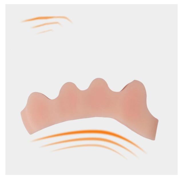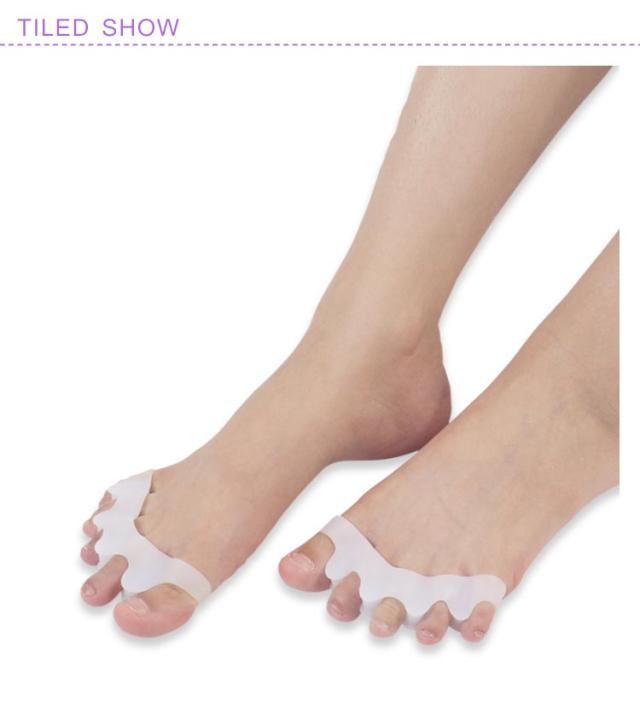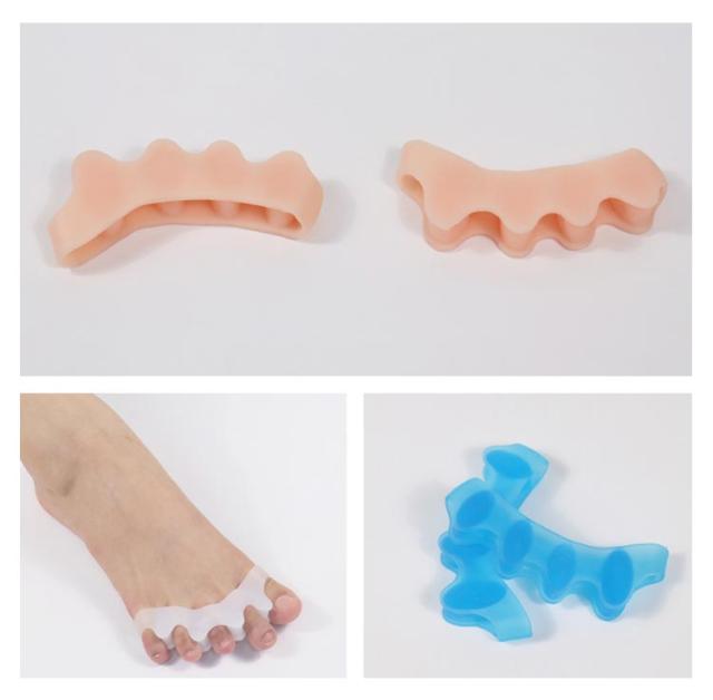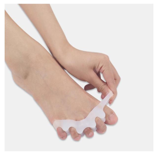 | 弾力性に優れたシリコン素材を使用 シリコンパッドを装着し足指を広げることで、歩行時の衝撃を抑え足指をやさしく保護します 外反母趾や偏平足など、足指や足裏の矯正は、姿勢が良くなったり、歩き方も良くなり、腰痛が緩和されたり、足が綺麗になります | |