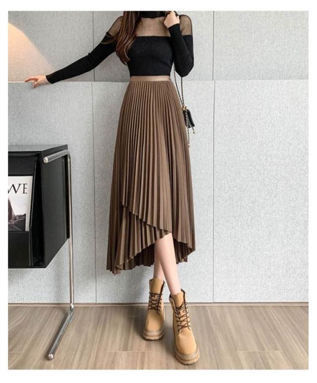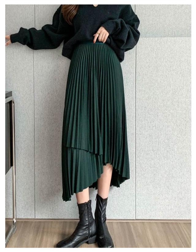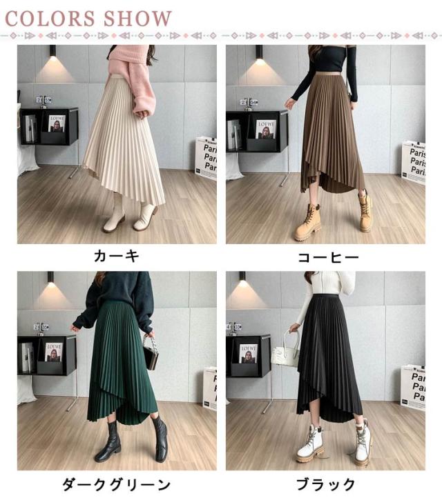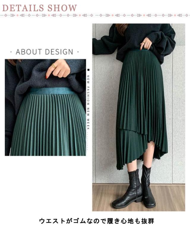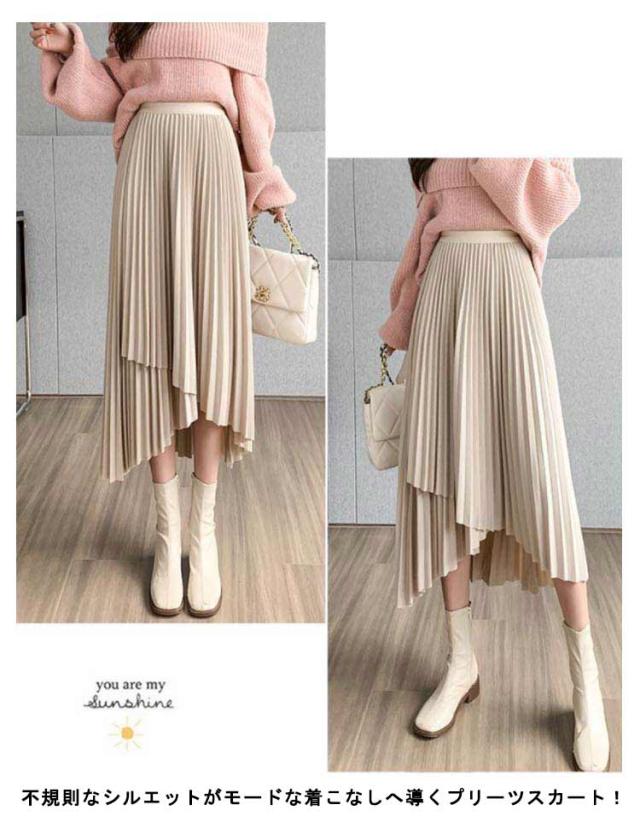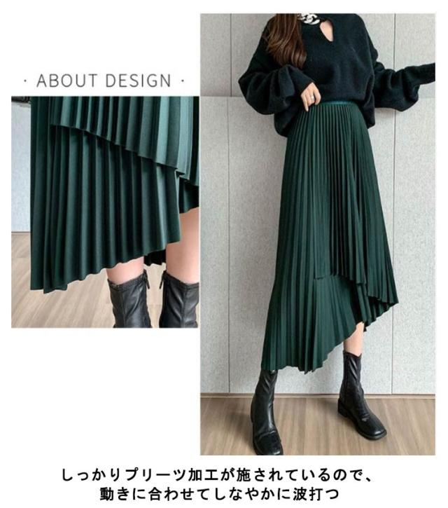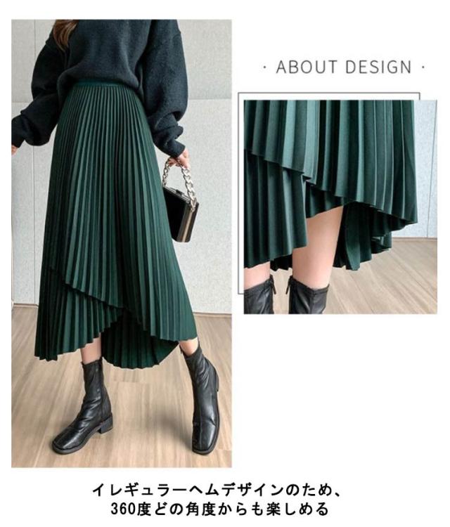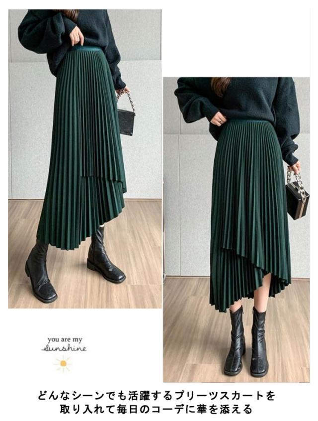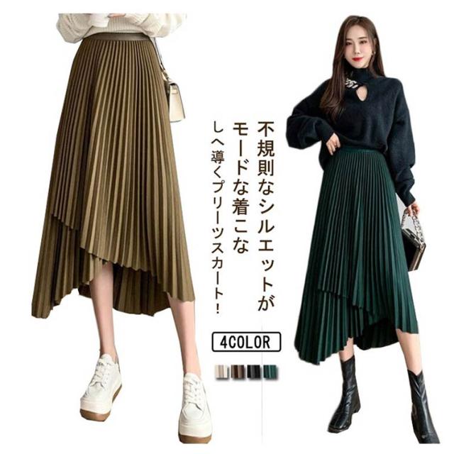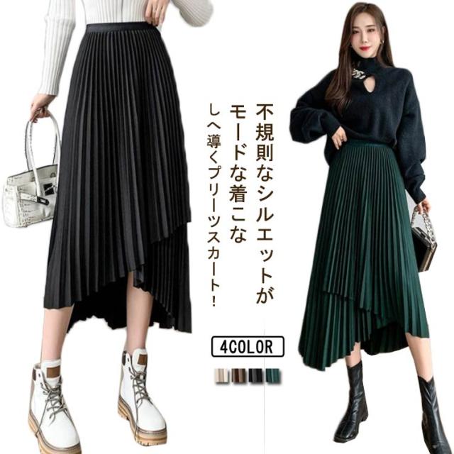 送料無料 プリーツ スカート ロング ミモレ丈 プリーツスカート きれいめ 大人カジュアル 不規則 シルエット フレアスカート Aライン フレア 個性的 体型カバー ロングスカート おしゃれ ボトムス お出かけ コーデ フリーサイズ