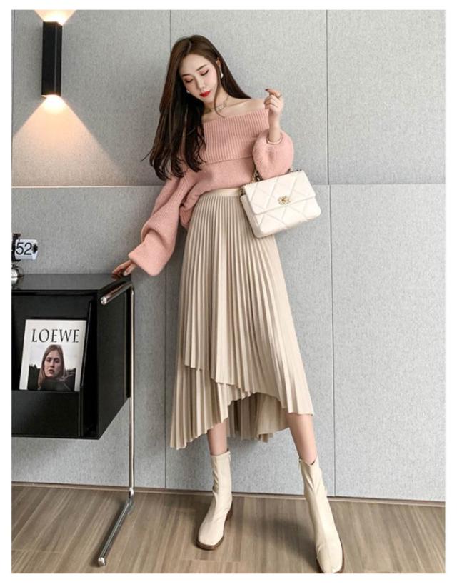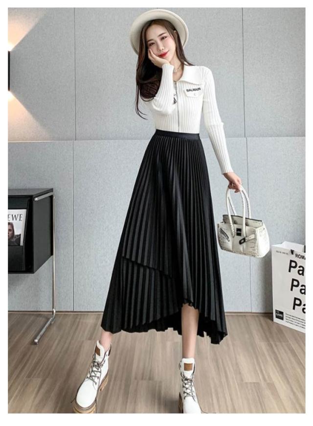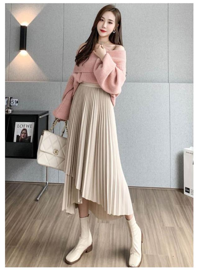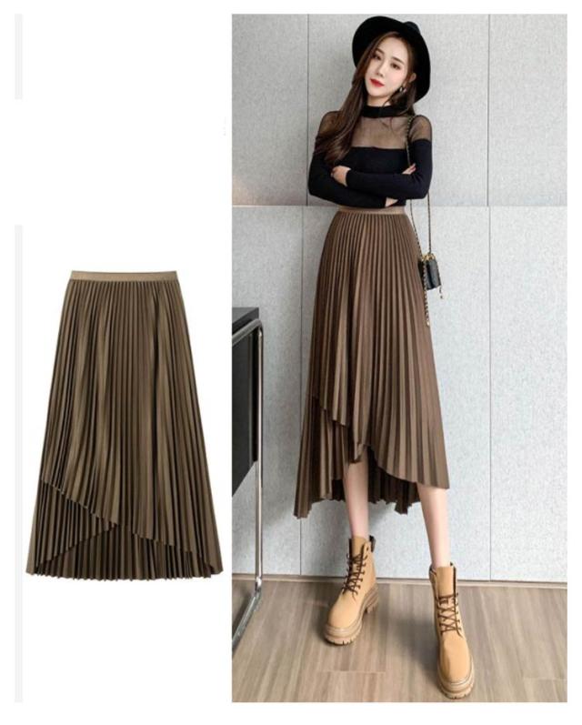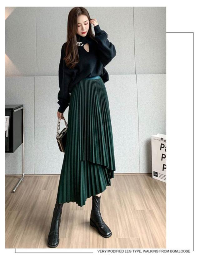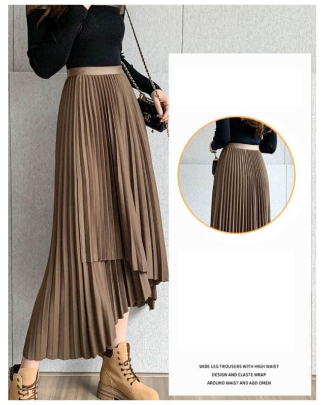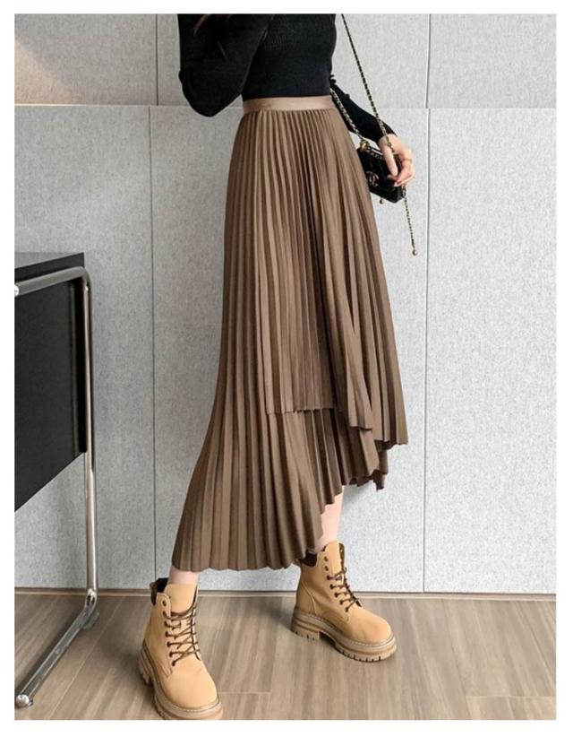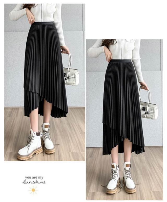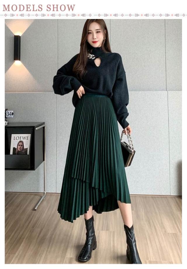 送料無料 プリーツ スカート ロング ミモレ丈 プリーツスカート きれいめ 大人カジュアル 不規則 シルエット フレアスカート Aライン フレア 個性的 体型カバー ロングスカート おしゃれ ボトムス お出かけ コーデ フリーサイズ