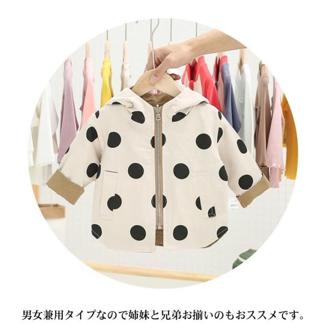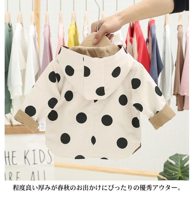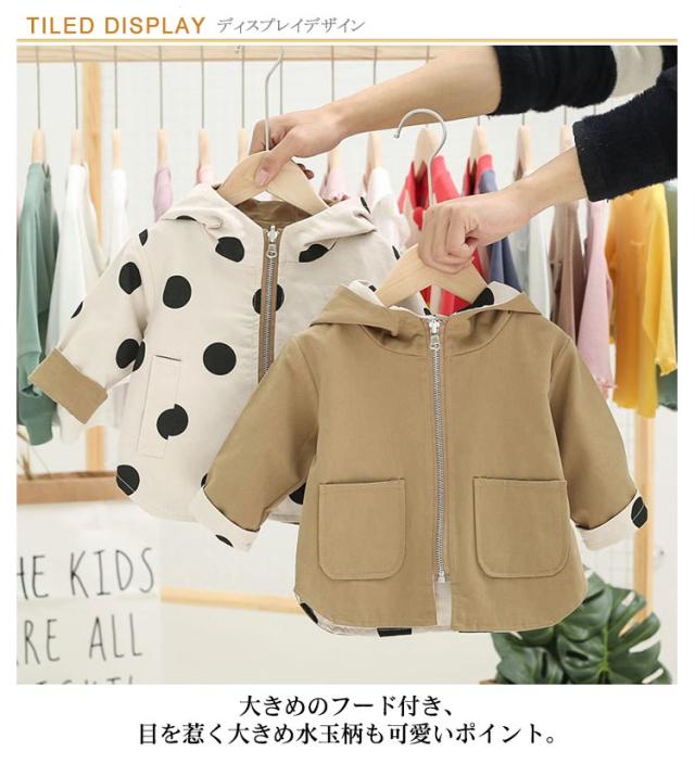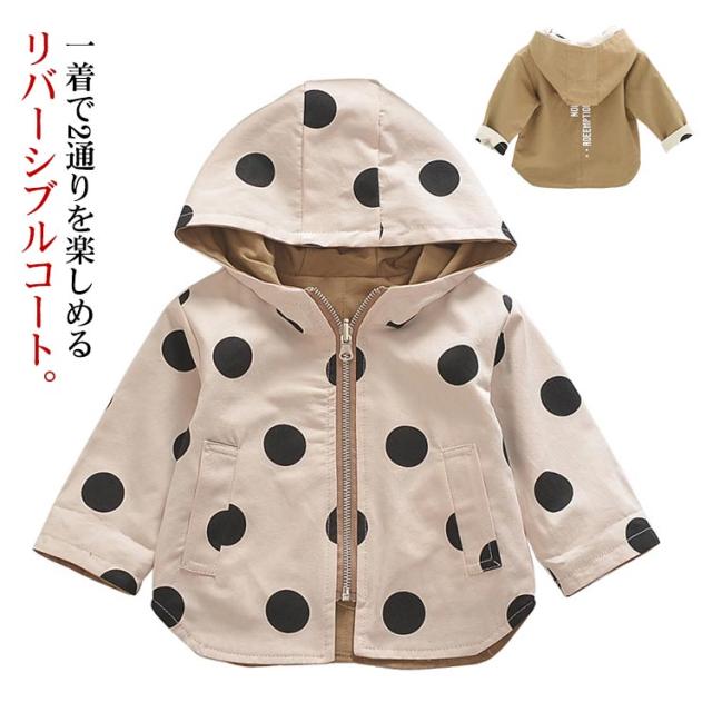 リバーシブル ジャケット 送料無料 赤ちゃん ベビー服 キッズコート ベビーコート リバーシブルコート キッズ ジャケット フード付き キッズ スプリングコート ドット柄 ジップアップ 女の子 男の子 アウター 両面コート 春物 ベビー用 子供服 秋 冬 春 アウター
