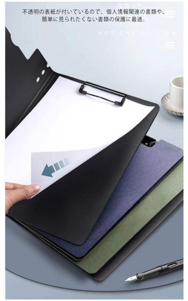 | 360°折り返すデザイン、持ち運びに便利なクリップボード2枚セット ダブルのクリップで書類を2か所に分けて収納。 不透明の表紙が付いているので、個人情報関連の書類や、簡単に見られたくない書類の保護に最適。 表紙は360°折り返せるので、立ったままの筆記でも書き込みやすい。 表面に加工を施し、水、汚れに強くしております。 すべり止めストッパー付きのクリップが書類をしっかり固定します。 | |