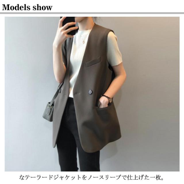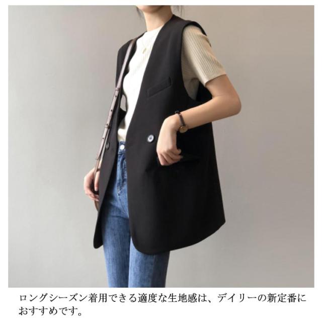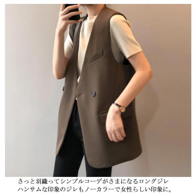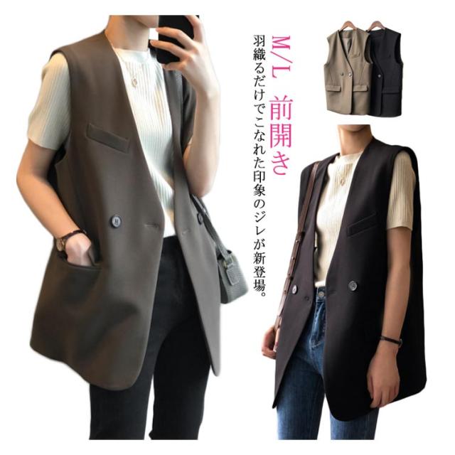 テーラードベスト スーツベスト ジレ 送料無料 レディース 春 夏 ロング キレイめ ベスト ロングベスト テーラード ノースリーブ シンプル 羽織り 前開き 無地 通勤 きれいめ 黒 モカ 茶色 M L 20代 30代 40代