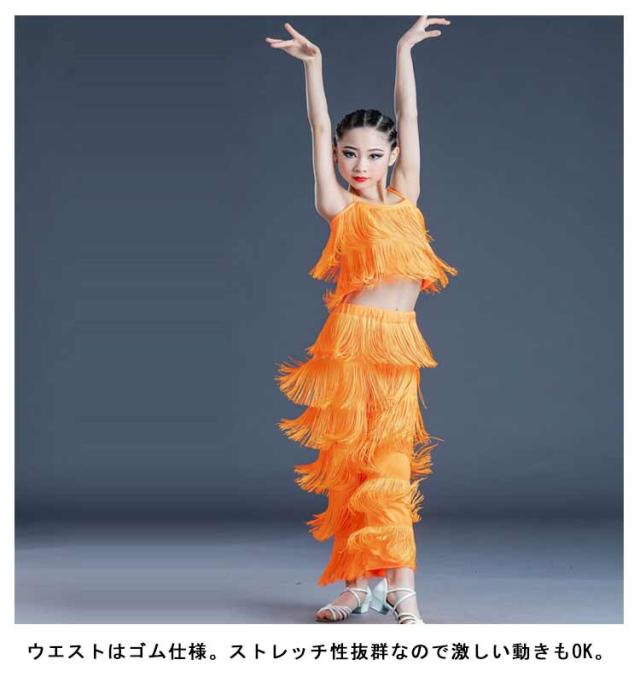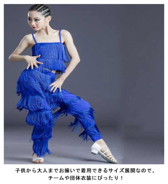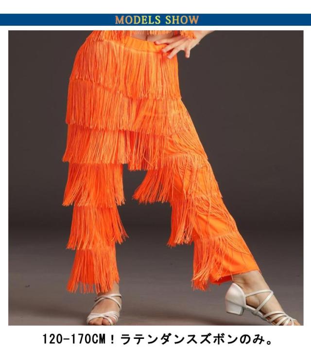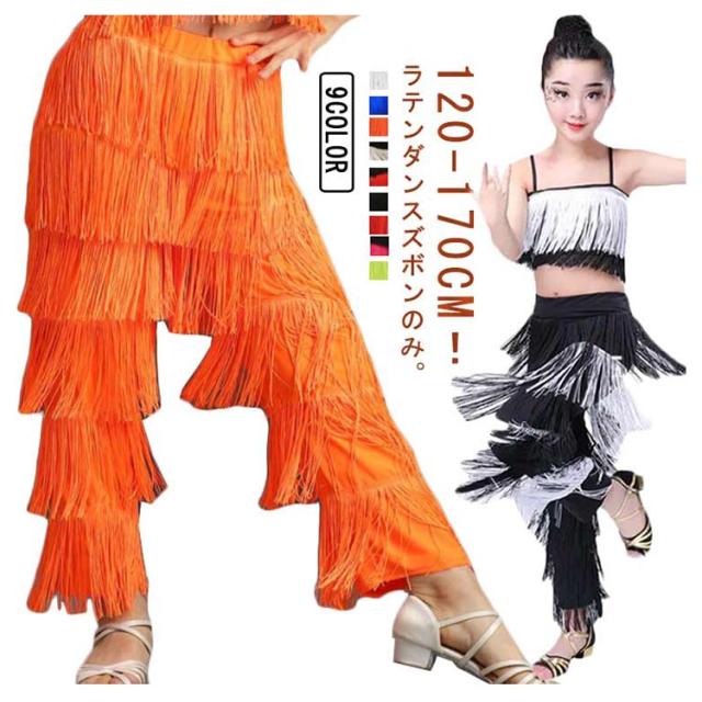 | 120-170cm!ラテンダンスズボンのみ。 子供から大人までお揃いで着用できるサイズ展開なので、チームや団体衣装にぴったり! 動くとフリンジがゆらゆら揺れ、踊りも大きく見えて、カッコいい! ウエストはゴム仕様。ストレッチ性抜群なので激しい動きもOK。 | |