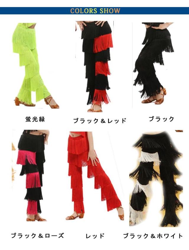 1点セット(ズボンだけです) ダンス衣装 ボトムス ラテンダンスズボン ラテンダンス衣装 ズボン 大人/子供用 ダンス衣装 レッスン着 フリンジズボン ラテンダンス ダンスウェア キッズ 女の子 ベリーダンス 120 130 140 150 160 170cm ブラック ブルー ローズ レッド