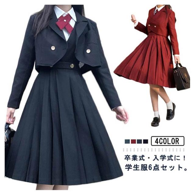 学生制服 女子 ブレザー セット 女子高生 学生服 スクール 高校生 女子制服 シャツ ワンピース リボン バッジ 6点セット セーラー服 レディース 制服 ジャケット ハロウィン コスプレ コスチューム JK制服 紺 黒 赤 スーツ 卒業式 入学式 学園祭 文化祭 発表会 送料無料