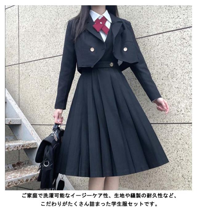 | 卒業式・入学式に!学生服6点セット。 女の子:ジャケット/長袖シャツ/ワンピース/リボン/バッジ/チェーン。 綿+ポリエステル素材を使用、安っぽく見えないしっくりとした作り。 季節変わりや気温の変化が激しい時期に最適なオールシーズン制服。 ご家庭で洗濯可能なイージーケア性、生地や縫製の耐久性など、こだわりがたくさん詰まった学生服セットです。 | |